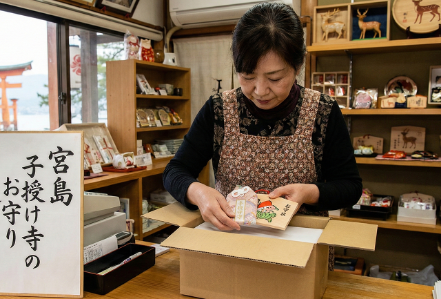 宮島の子授けで知られるお寺のお守りを代理でお届けします。